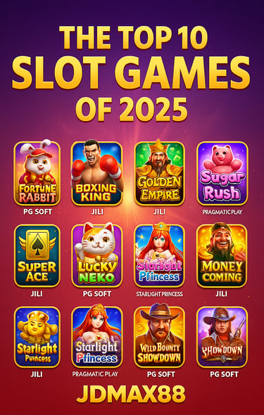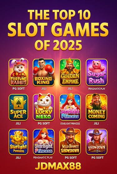 The top 10 slot games of 2025 are delivering heart-racing action, big wins, and unique features that define the year’s best in online gaming. And at JDMAX88, they’re just a tap away. Whether you're chasing multipliers or savoring smooth spins, now is the perfect time to dive into the action and discover why these titles dominate the reels.